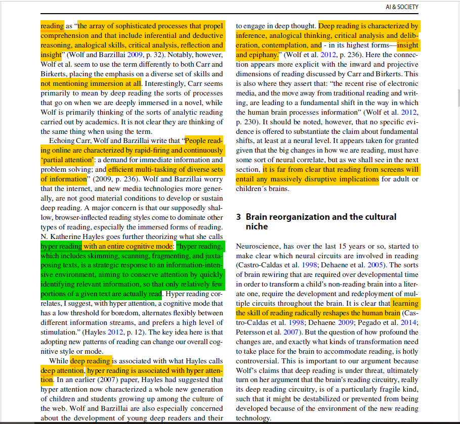 It may be true that people now spend less time reading paper books. But it doesn’t necessary mean that we became worse at deep-reading. The technologies gave us the tools to extract the information more effectively but when you don’t rush for the information, you can still sit on your couch and enjoy good old linear reading.